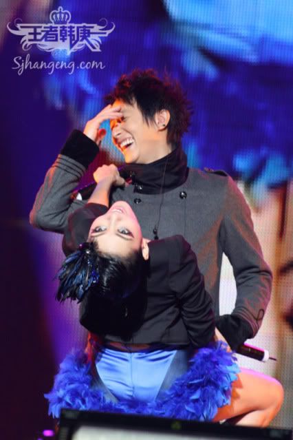 Fans can't help but scream. Hangeng! It's been awhile! Why did you let that foxy lady do that to all of you? The Super Naive boys being treated like that, I don't feel any jealous, it's very...[eww! (host)]